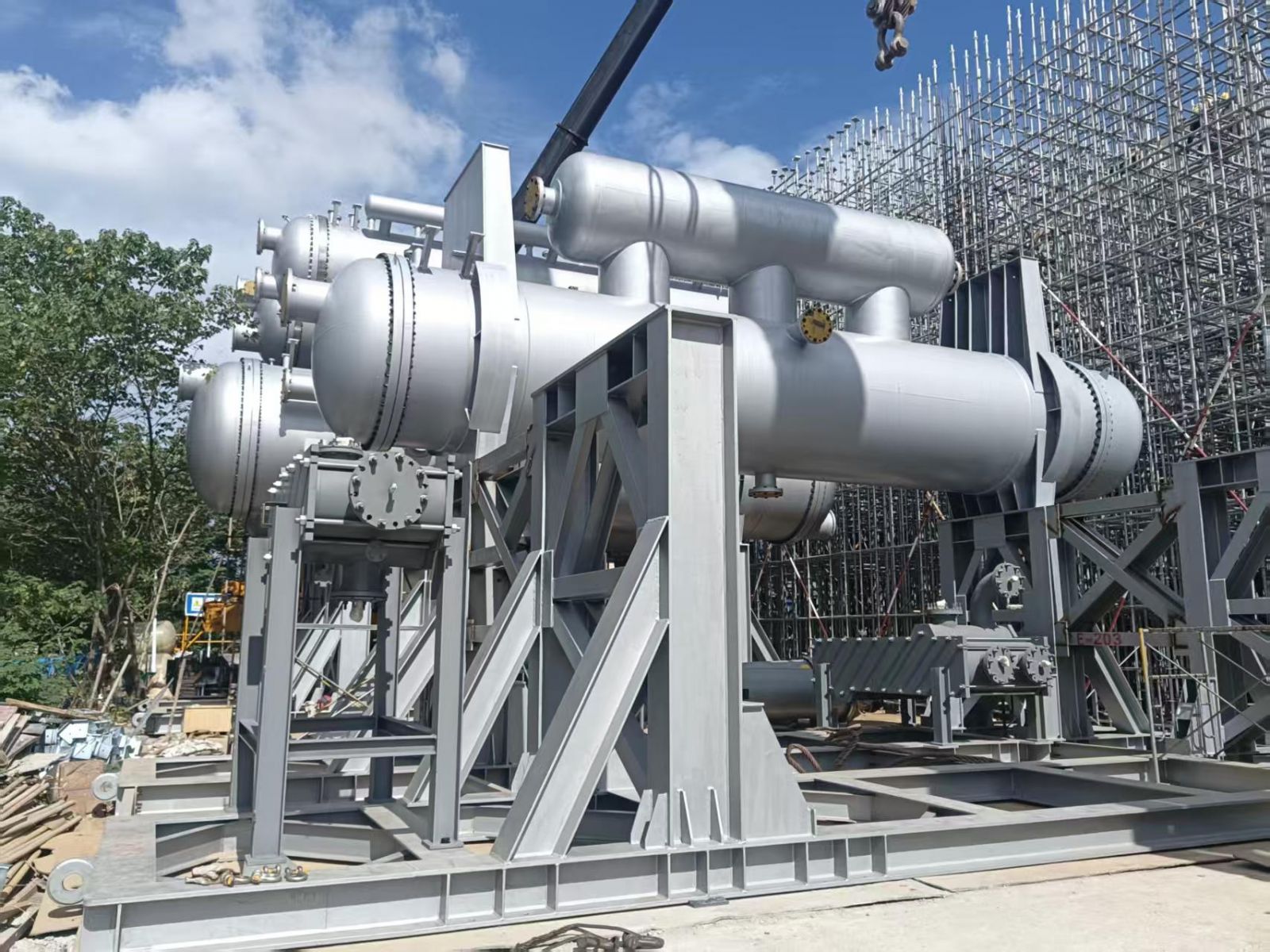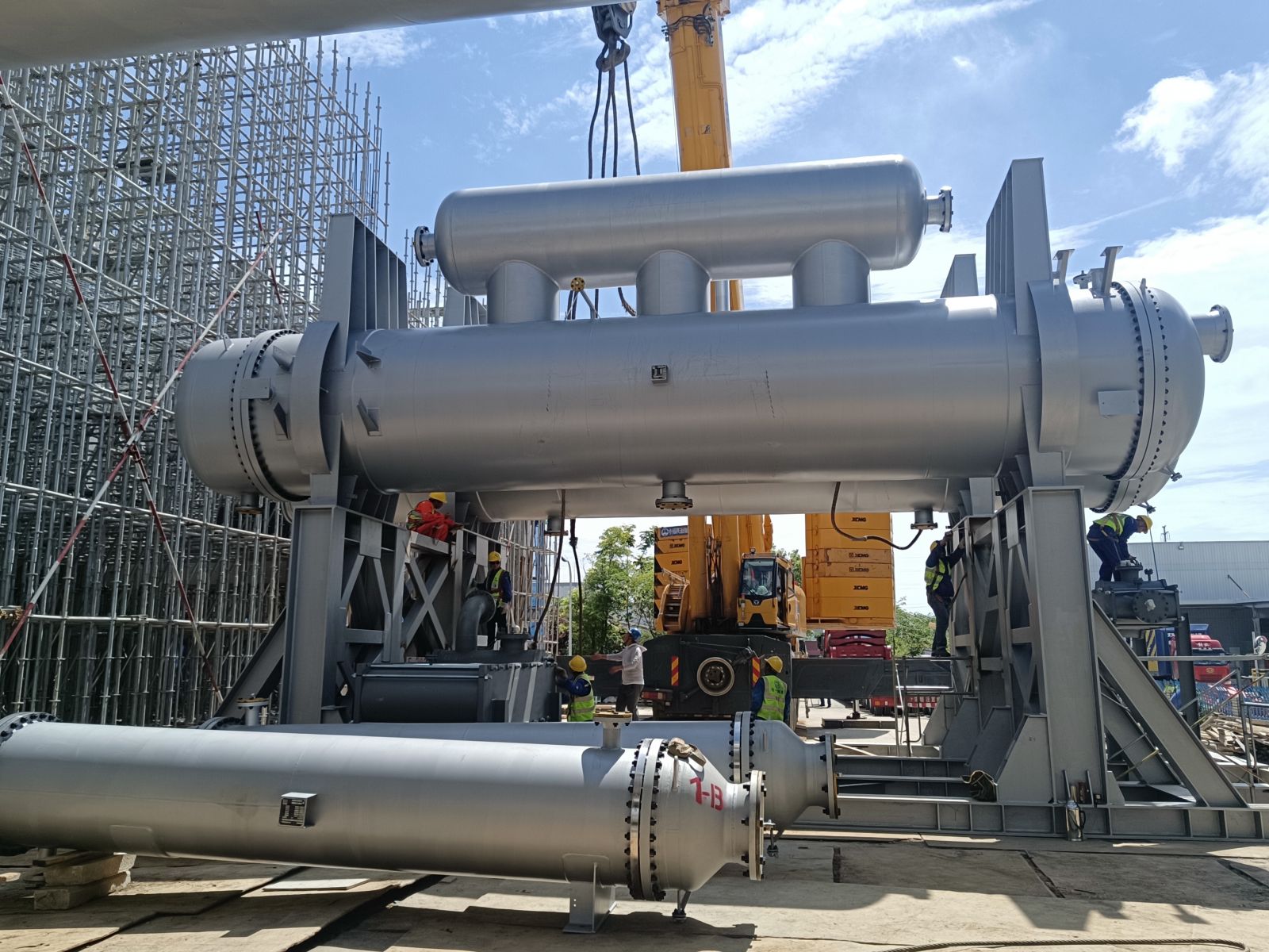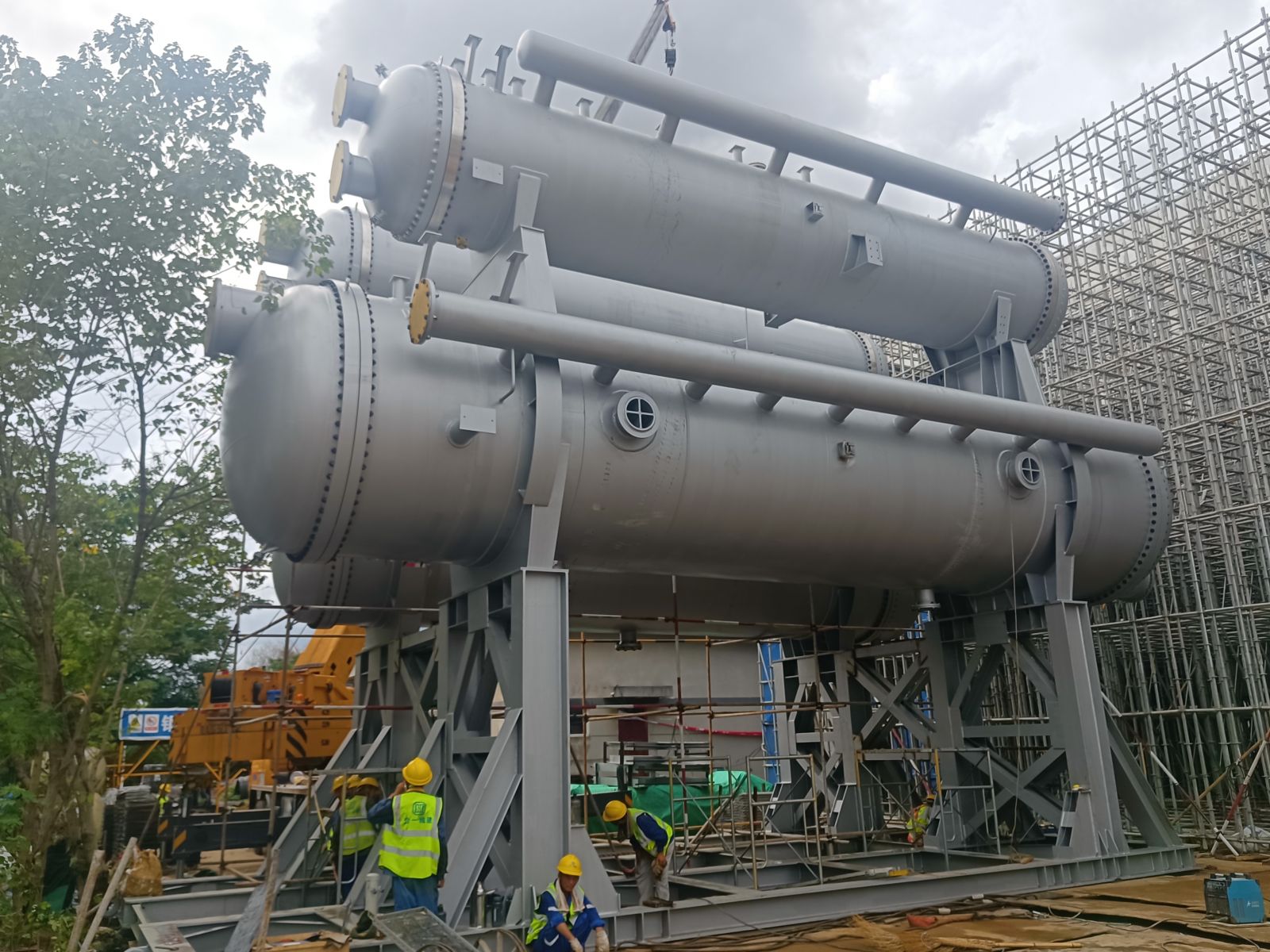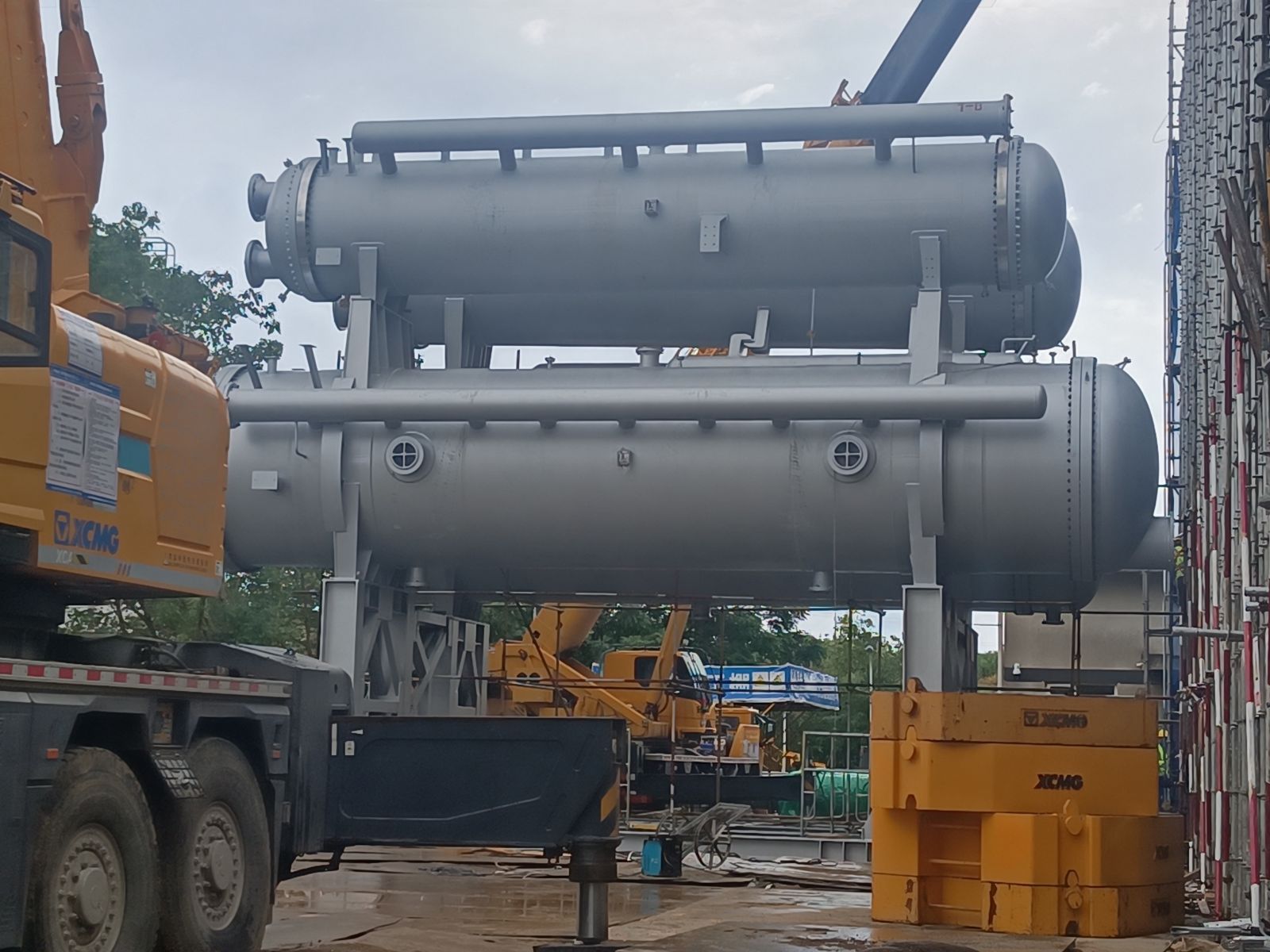我公司為普泛能源定制的萬千瓦級(jí)低品位熱源制冷制冰設(shè)備,現(xiàn)場實(shí)現(xiàn)一次吊裝成功。該設(shè)備單套總噸位達(dá)500噸,兩套設(shè)備均一次性精準(zhǔn)就位。其可廣泛應(yīng)用于乙二醇、合成氨、綠氨、半導(dǎo)體、電廠等多個(gè)領(lǐng)域。