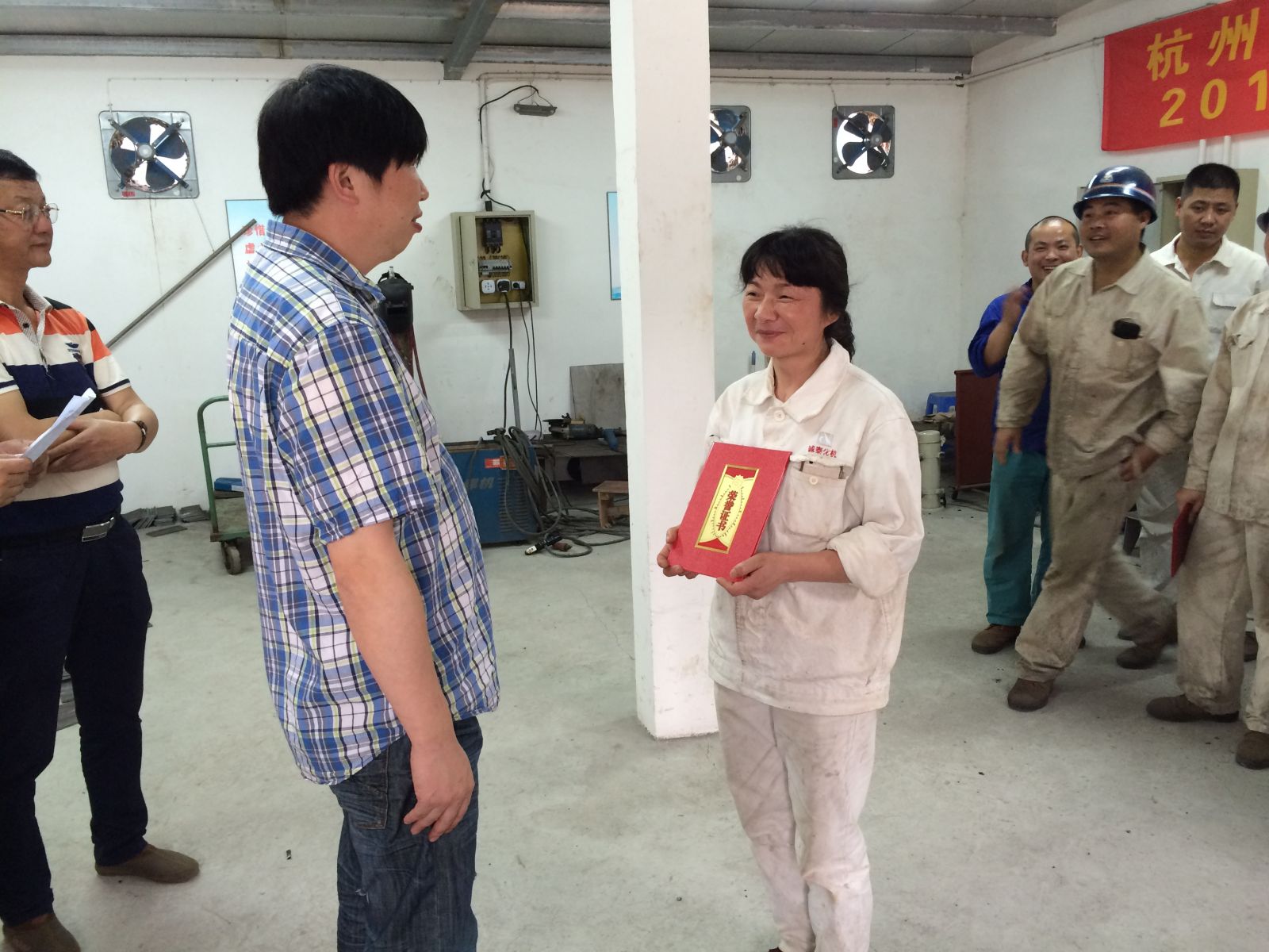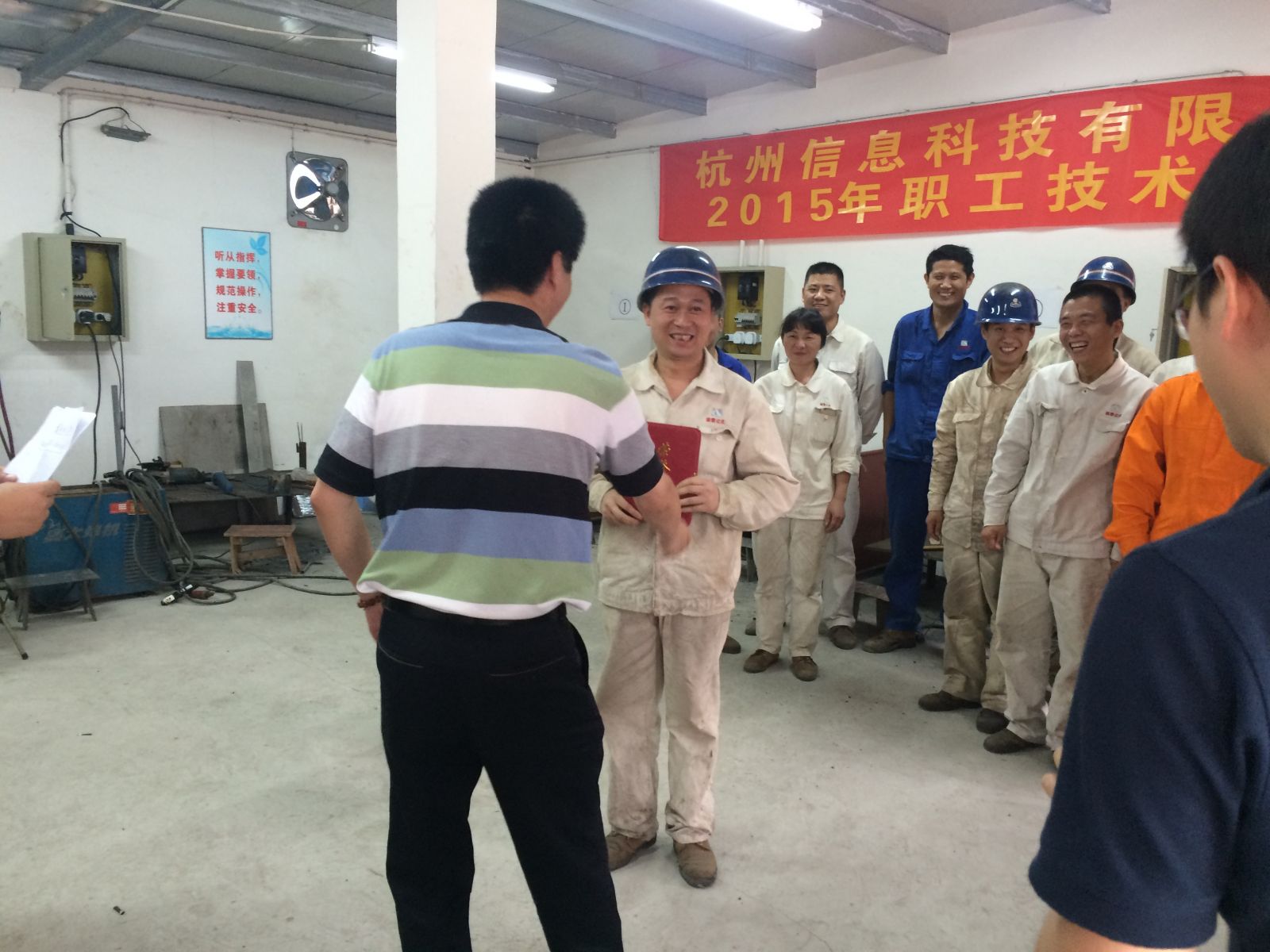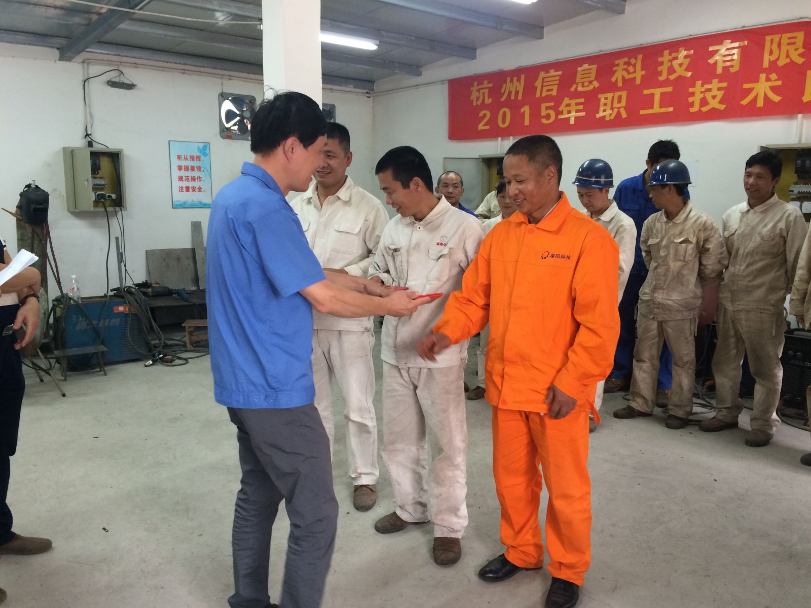 為了激發(fā)全體員工學(xué)習(xí)知識、技術(shù)的積極主動性,形成奮發(fā)向上、爭創(chuàng)一流的氛圍,我公司與杭州信息科技有限公司于2015年9月28日聯(lián)合舉辦了一次電焊技能交流大賽。公司技術(shù)人員積極參與了比賽,并使出自己的真本事取得了優(yōu)異的成績,展現(xiàn)了誠泰人的風(fēng)采。公司董事長親臨現(xiàn)場為獲獎?wù)哳C發(fā)獲獎證書,并鼓勵各技術(shù)人員再接再厲,勇創(chuàng)佳績。