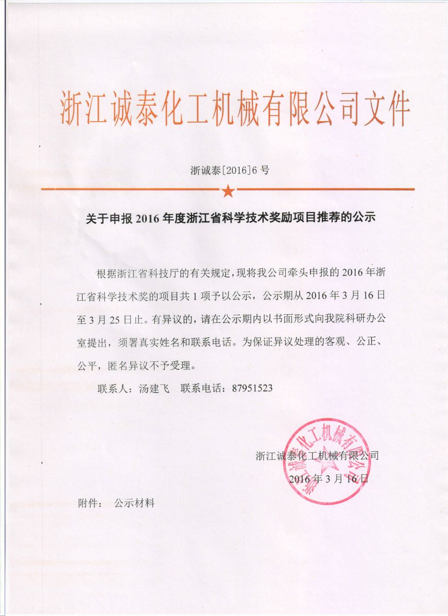 關(guān)于申報(bào)2016年度浙江省科學(xué)技術(shù)獎(jiǎng)勵(lì)項(xiàng)目推薦的公示