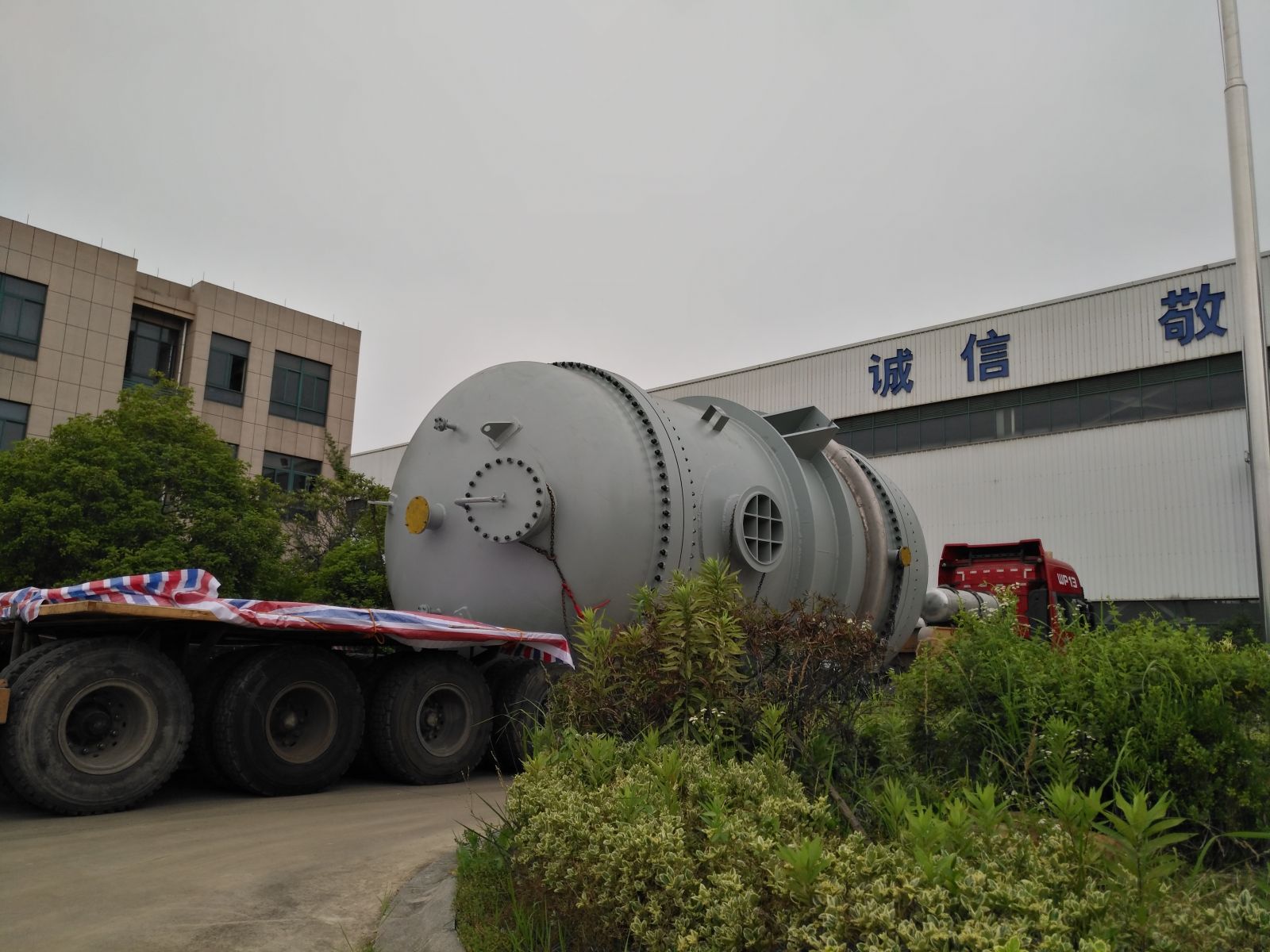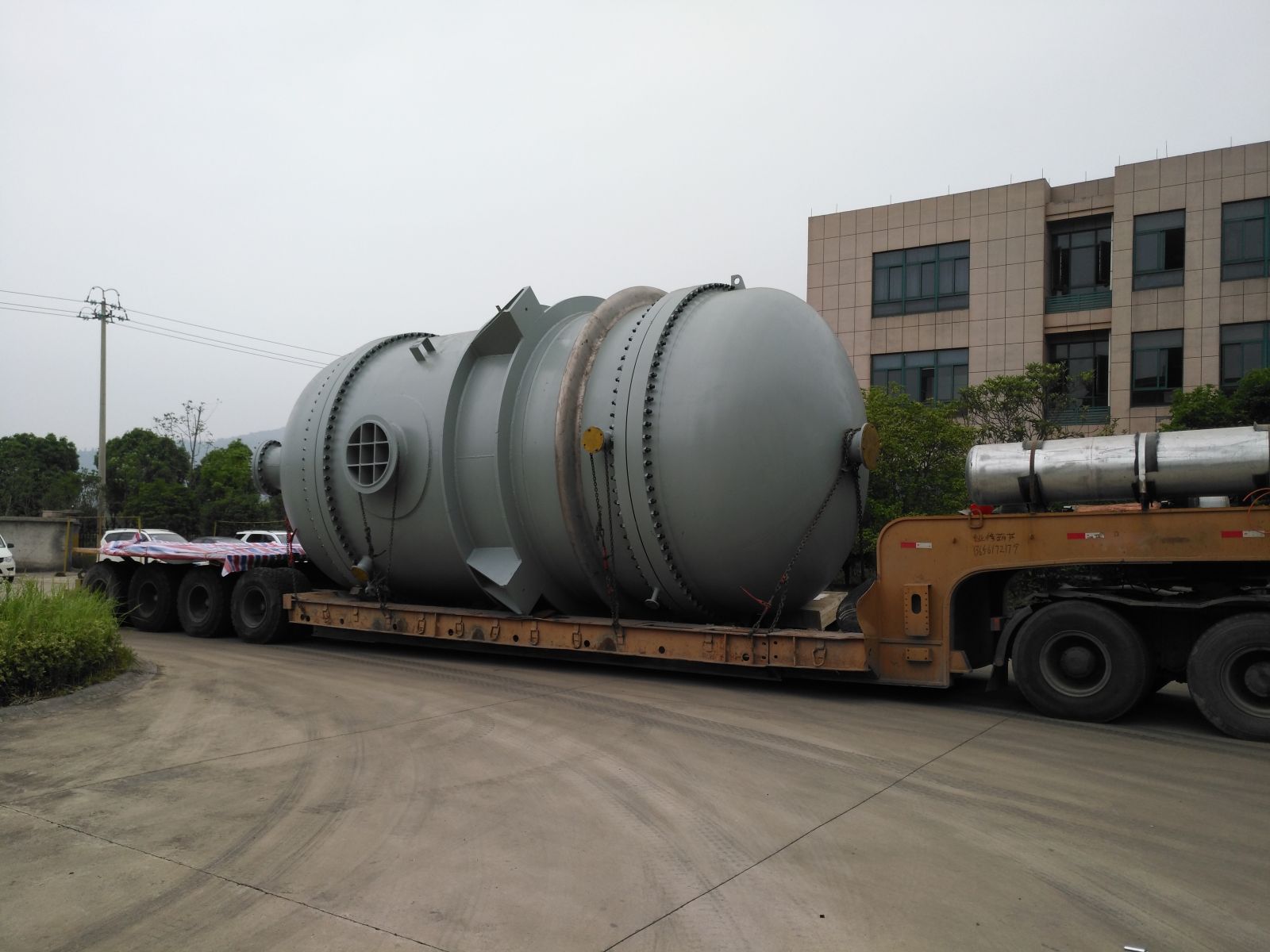 該環(huán)已醇脫氫反應器為疲勞容器是項目的核心裝備,單臺設備凈重約120噸,殼程直徑約4米,換熱面積約2400平方米,設計溫度約400℃,多項技術、制造參數(shù)為公司近幾年制造最大產(chǎn)品之一。