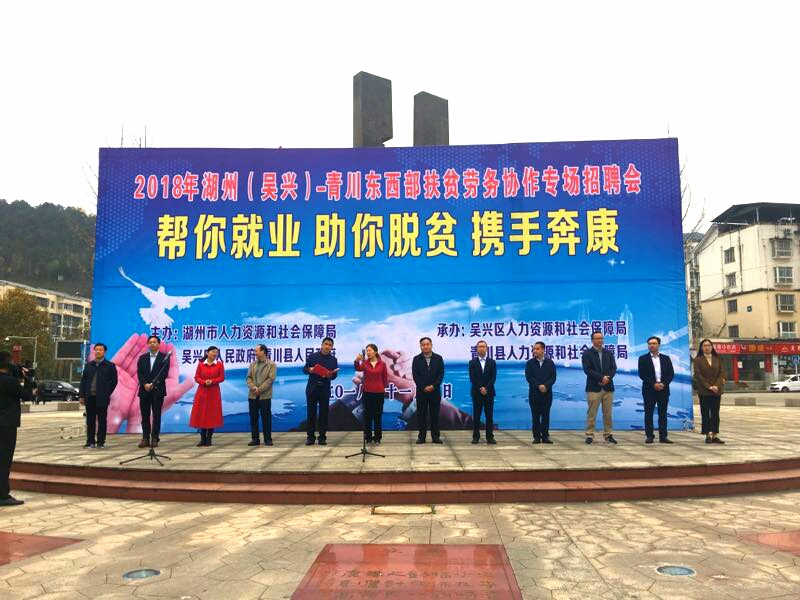 11月3日,浙江湖州(吳興)——青川2018年?yáng)|西部扶貧勞務(wù)協(xié)作專場(chǎng)招聘會(huì)在青川縣木牘廣場(chǎng)順利舉行。我公司積極響應(yīng)湖州就業(yè)局號(hào)召,履行企業(yè)應(yīng)盡的社會(huì)責(zé)任,盡最大的力量幫助貧困群眾就業(yè)脫貧。
