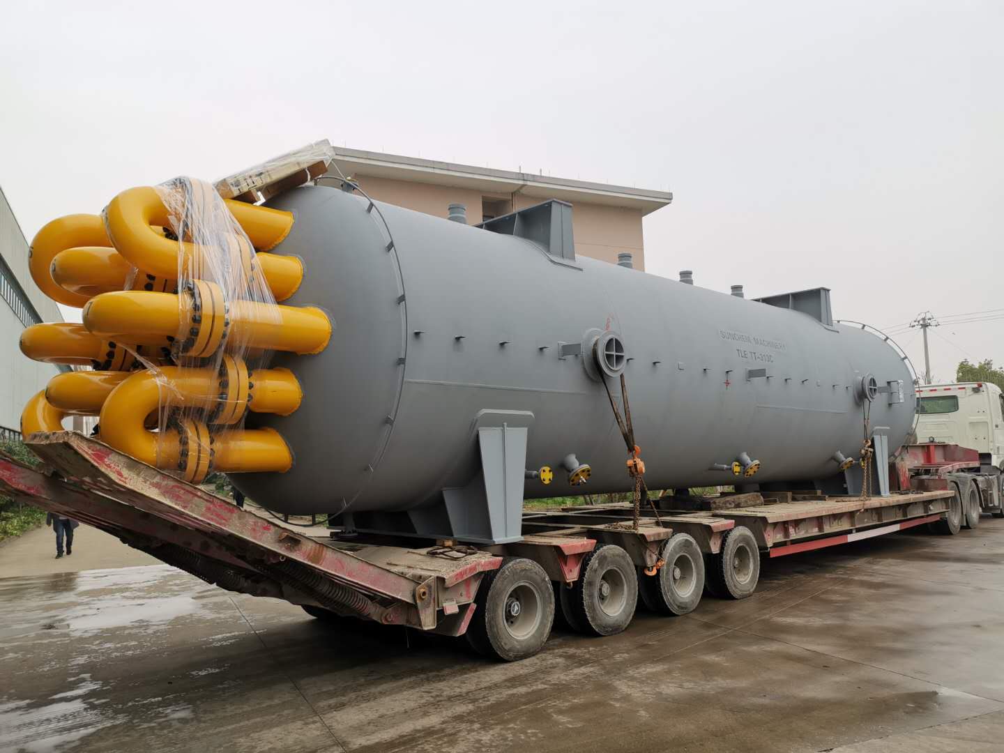 我公司承接國外客戶,氯乙烯工廠擴(kuò)建項目已保質(zhì)保量的交付業(yè)主,并得到業(yè)主極大好評。該項目設(shè)備采用ASME標(biāo)準(zhǔn)設(shè)計、制造,設(shè)備總長14米,總重101噸,設(shè)計溫度527℃,設(shè)備最厚45mm,換熱管ø273*21.44。